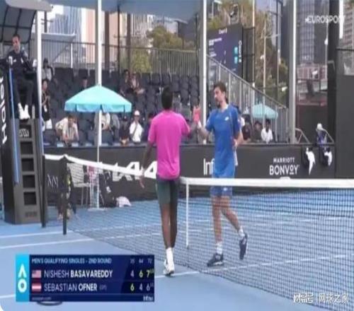 讓人驚訝的是,當(dāng)所有人都在期待接下來(lái)兩人如何繼續(xù)斗法時(shí),此時(shí)奧夫納突然之間握拳慶祝勝利,然后走到網(wǎng)前想和巴薩瓦雷迪握手。這一幕將大家直接整懵了,不知道奧地利人這是唱的哪出戲。